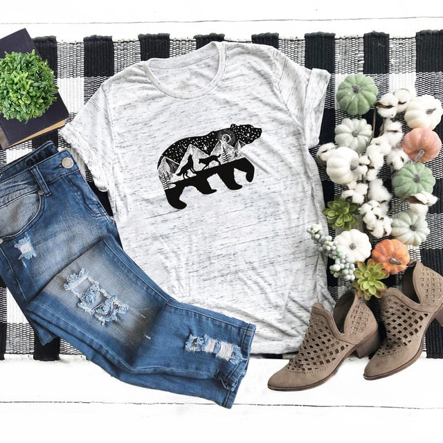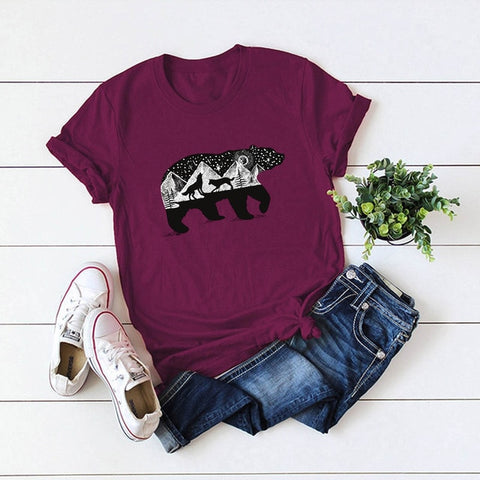 Plus Size Funny T Shirts Black White Bear Wolf Print TShirt Women Cotton O Neck Short Sleeve Tops Women T Shirt Streetwear